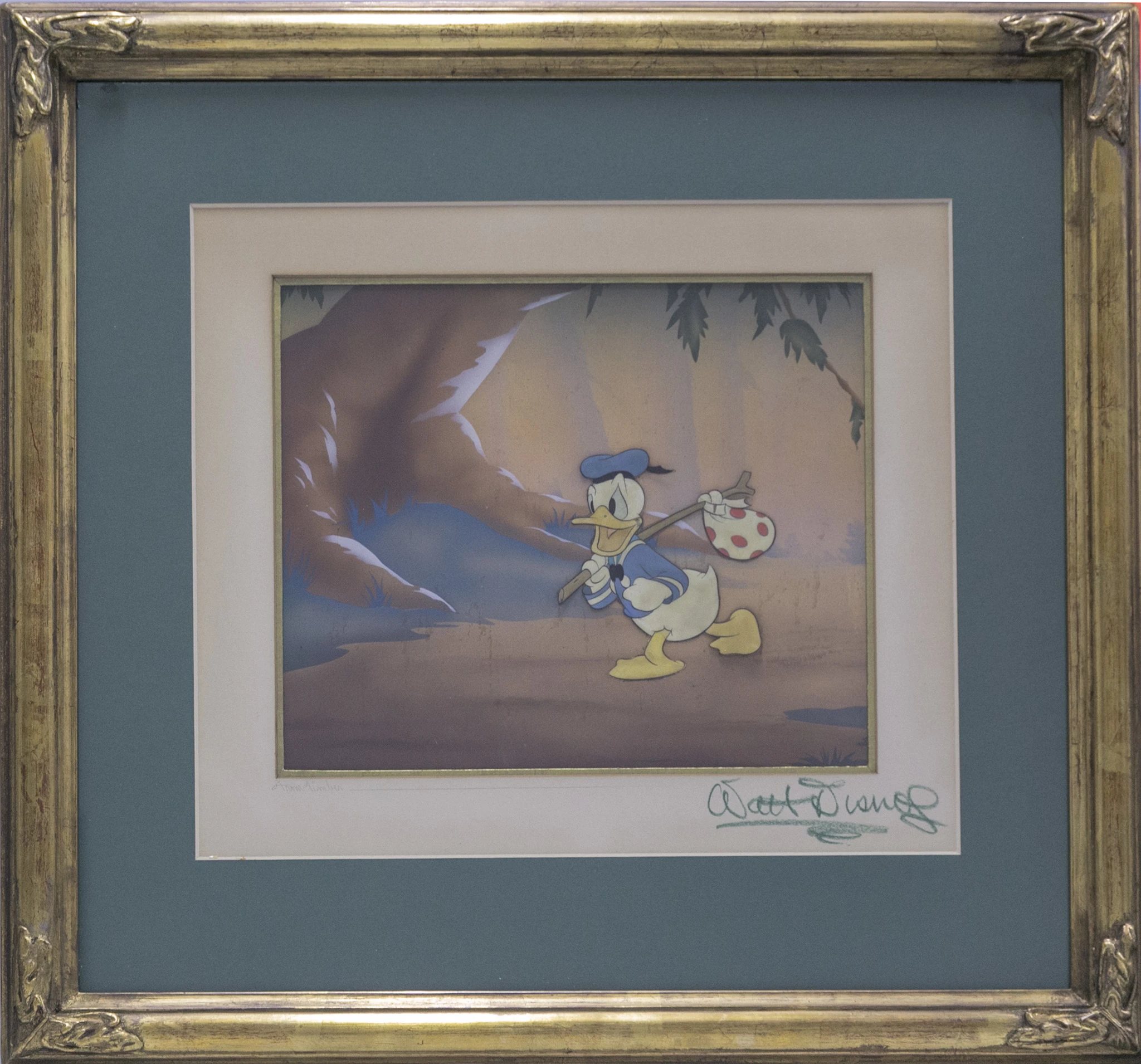En una, el Ratón Mickey lee un libro fuera de una carpa con Pluto mirando expectante; y en la otra el Pato Donald deambula con una muda de ropa atada a un palo. Las dos piezas son testimonios perfectos de ese momento bisagra de los estudios Disney: Mickey fue gran estrella de la década del treinta y luego de 1941 tendría muy poca presencia en las nuevas producciones; mientras que Donald cobraría mayor protagonismo, apareciendo en más películas, algunos años en más del triple que su compañero roedor.
